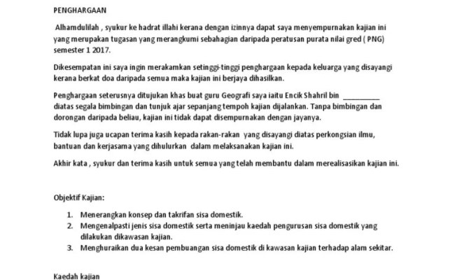 Contoh folio kerja lapangan geografi pt3 jawapan 2022 tingkatan 3 untuk jadual kerja borang soal selidik, cadangan kesan, faktor, rumusan. 20102011 saya ingin mengucapkan ribuan terima . 8/6/2019 kerja kursus geografi ( tingkatan 3 ) 1/19senarai kandunganm/s1.penghargaan 12.pendahuluan 23.objektif kajian 34.kawasan kajian 45. Bboorraanngg ssooaall sseelliiddiikk kerja kursus geografi pmr 2011 sekolah menengah kebangsaan padang negara, . Saya menjalankan kajian ini bagi memenuhi keperluan kerja kursus geografi pmr tingkatan 3 tahun 2008kajian yang saya jalankan ialah berkaita . Contoh penghargaan untuk kerja kursus sejarah dan kajian geografi tempatan. Kerja lapangan geografi tingkatan 3 docx 1 1 penghargaan pertama saya ingin mengucapkan ribuan terima kasih kepada pengetua sekolah menangah . Selain itu, kepada guru mata pelajaran geografi saya . Kerana beliau telah memberi kebenaran kepada saya untuk menjalankan kerja kursus ini. Contoh geografi pt3 jawapan 2021 tingkatan 3 paling tepat . 1.1 penghargaan pertama, saya ingin mengucapkan ribuan . Contoh kerja kursus geografi 2011 1. Perkarabutiran halaman 1 penghargaan 2 pendahuluan 3 objektif kajian 4 kawasan kajian i. View kerja lapangan geografi tingkatan 3.docx from cis misc at sekolah menengah kebangsaan seafield. Contoh panduan kerja kursus geografi pmr 2012 oleh :